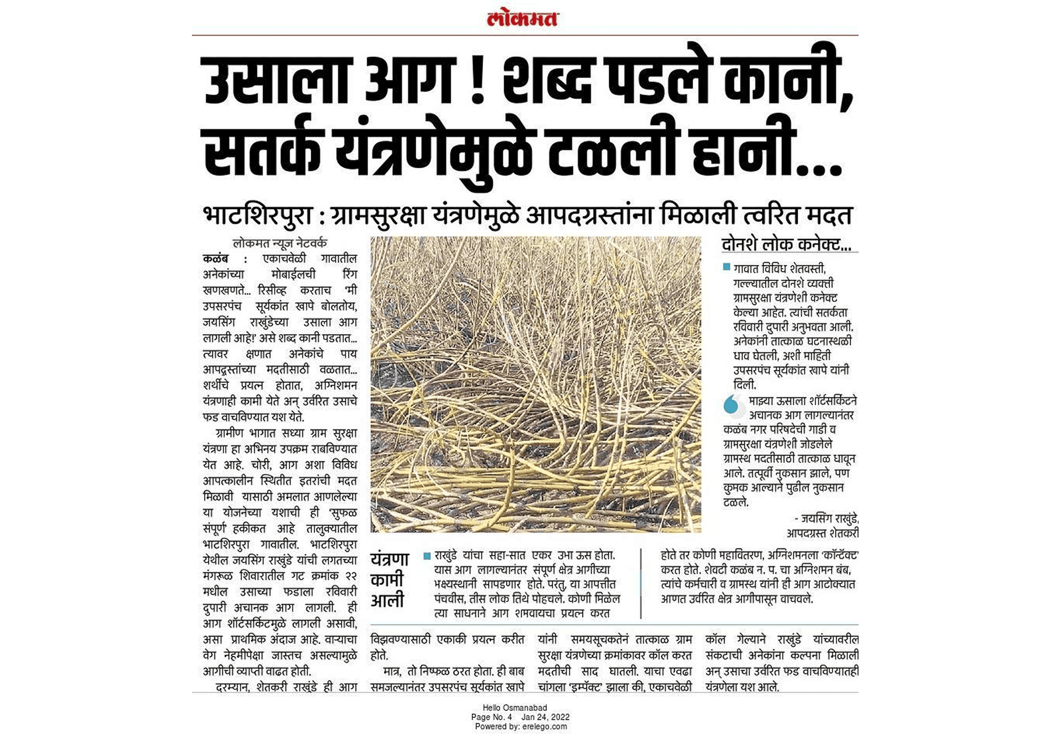 13. दिनांक 08/03/2022 रोजी पाडोळी ता. कळंब येथे 50 एकर ऊस आगीपासून वाचवण्यात यश.